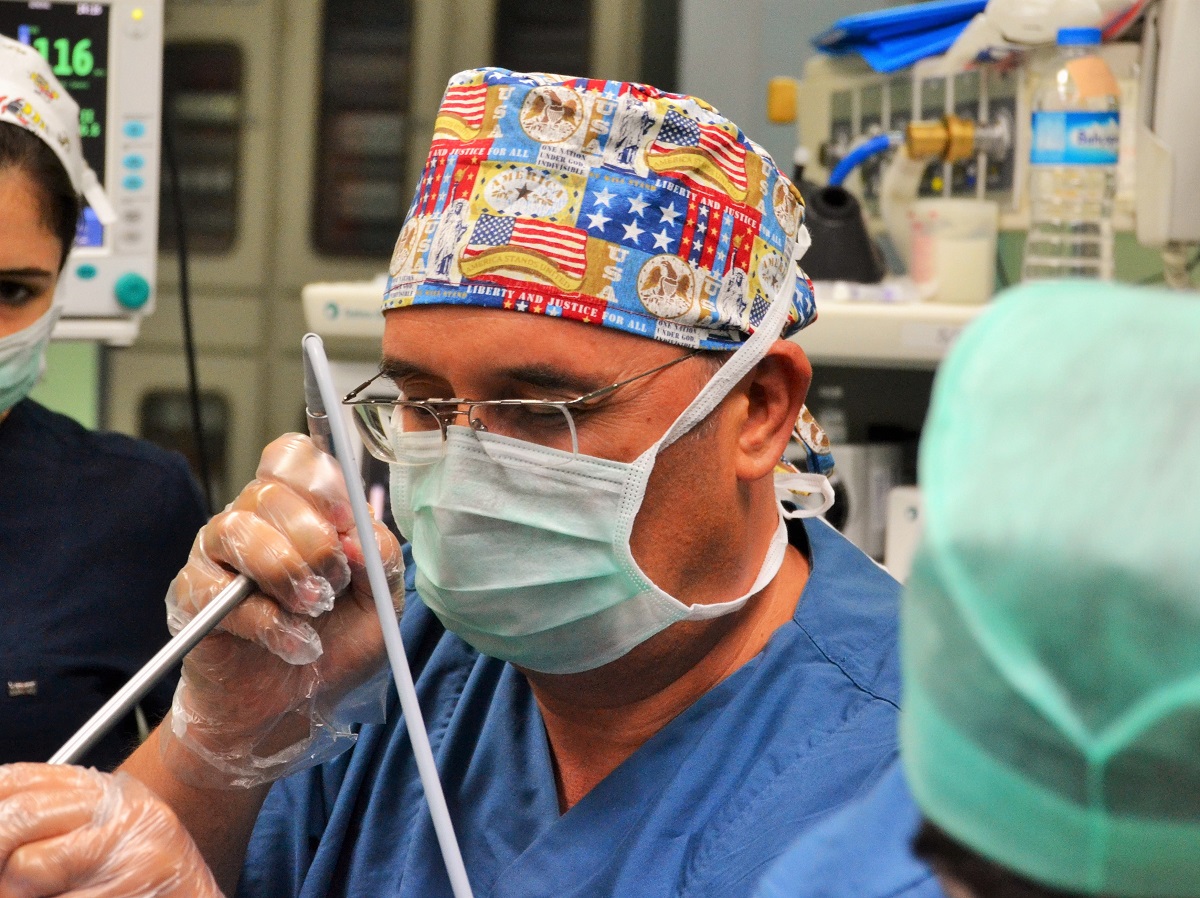 Dr. Levent Elbeyli (in loupes) in the operating room