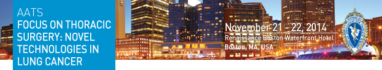 Dr. Alec Patterson and Dr. David J. Sugarbaker along with the entire Program Committee, invite you to attend the Focus on Thoracic Surgery: Novel Technologies in Lung Cancer meeting in Boston from November 21-22, 2014. The program includes a faculty of internationally recognized experts in lung cancer and applications of new technology for its surgical management.Register and reserve housing before October 23, 2014 and benefit from lower registration fees and a guaranteed hotel room in Boston.