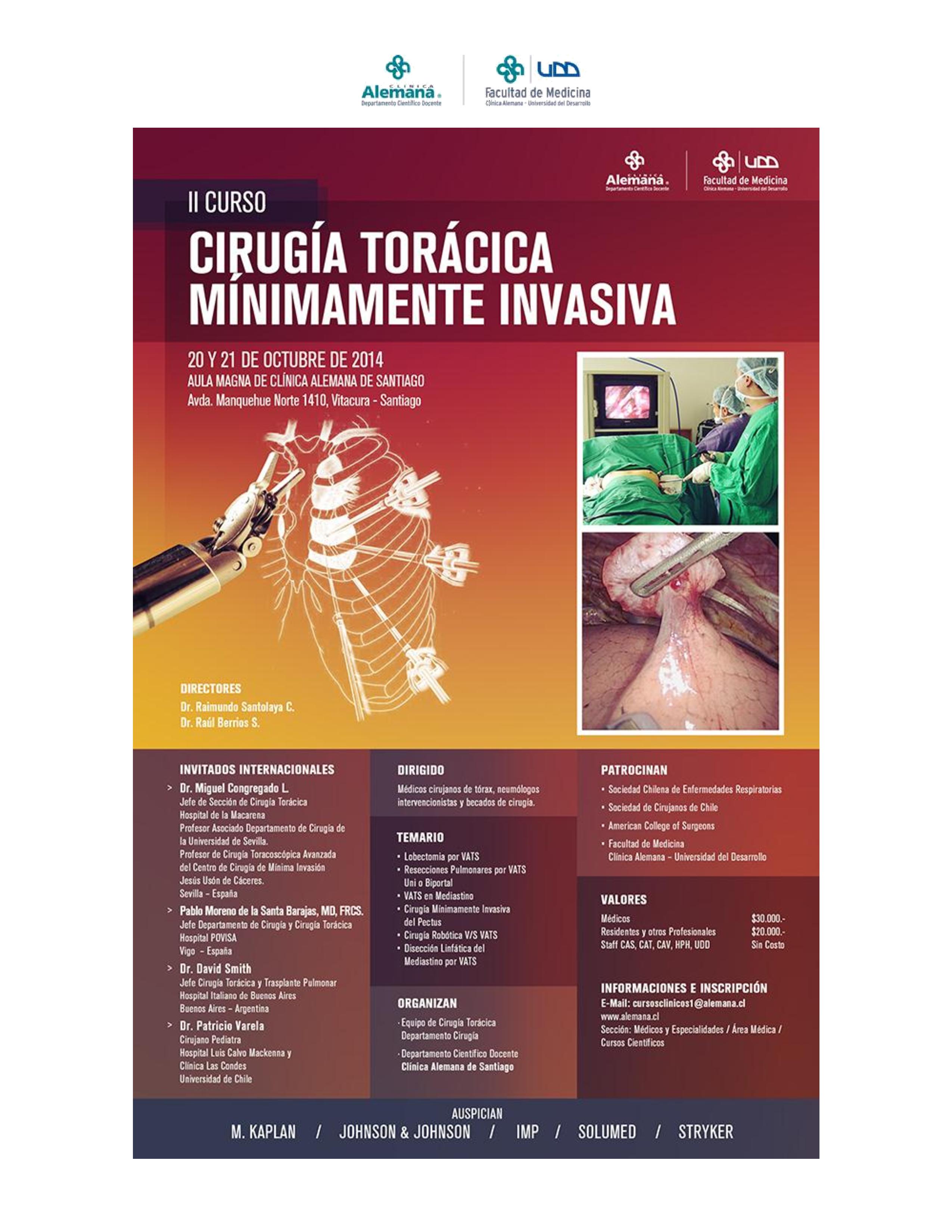 Interested surgeons should contact the clinic at this address: dmedico@alemana.cl or cursosclinicos1@alemana.cl or enroll on-line at www.alemana.cl