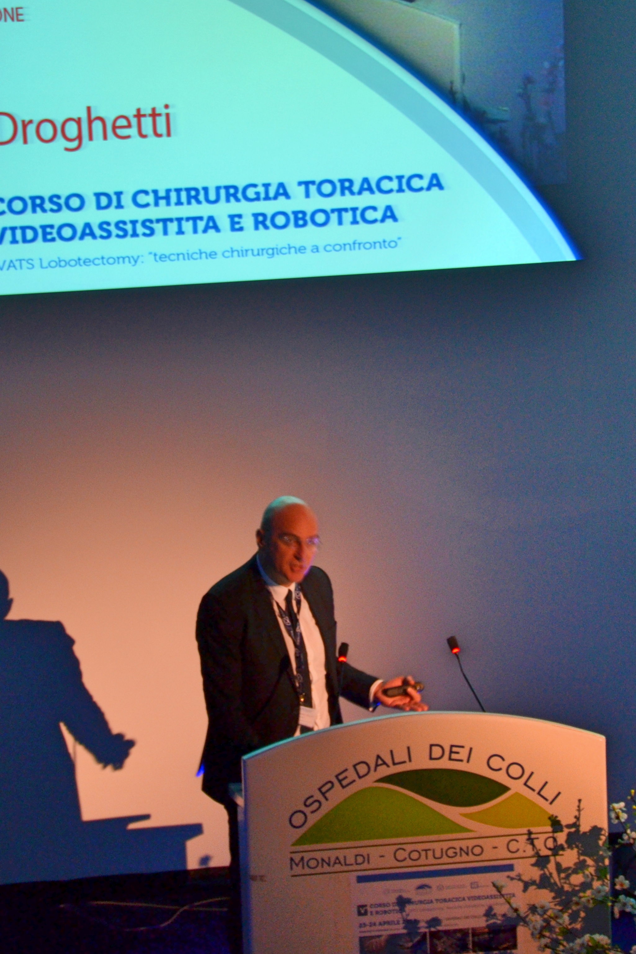 One of the surgeons addressing the group this morning is Dr. Andrea Droghetti, a thoracic surgeon from Carlo Poma Hospital in Mantova, Italy. Dr. Droghetti is here to present the latest information on the Italian VATS registry, Vatsgroup.it.